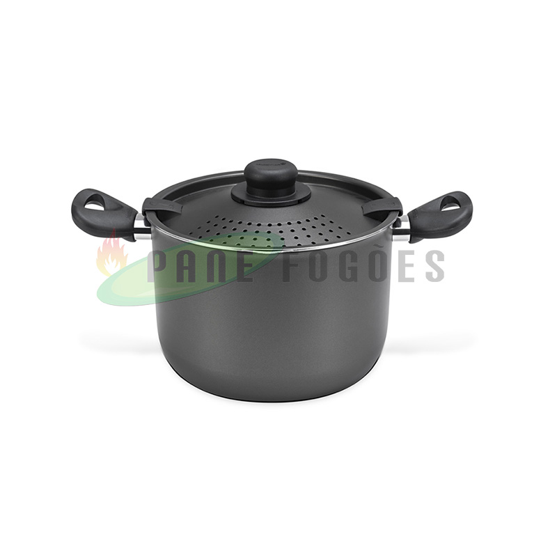 A espagueteira teflon Multiflon é ideal para quem procura praticidade no preparo de massas, sua tampa possuí sistema de travas e furos para facilitar o escoamento da água possibilitando o uso da mesma panela para finalizar o preparo.