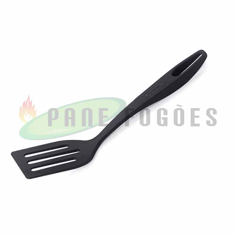 A espátula nylon Mutiflon é ideal para manuseio de alimentos em peças de teflon, evitando danos ao produto.
