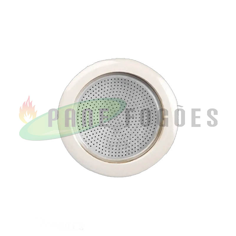 Peça de reposição para cafeteira italiana, sendo composto por 3 anéis de silicone e um filtro.