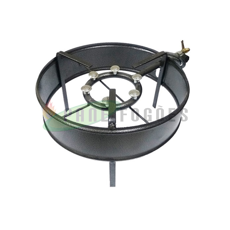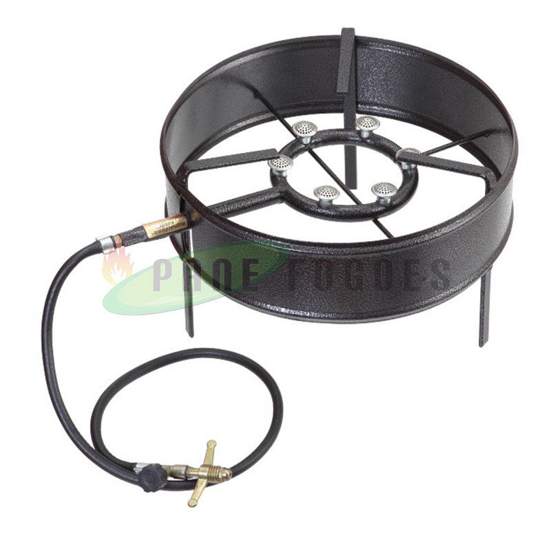 O fogareiro zincado alta pressão Papaléguas 6 caulins é ideal para uso de discos de arado, chapas ou panelas no preparo de bifes e para frituras como peixe e batata frita de forma mais rápida. Este produto deve ser utilizado diretamente no botijão.