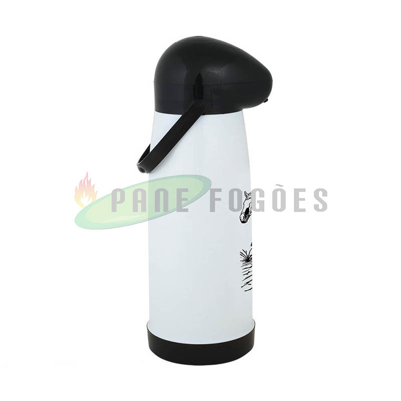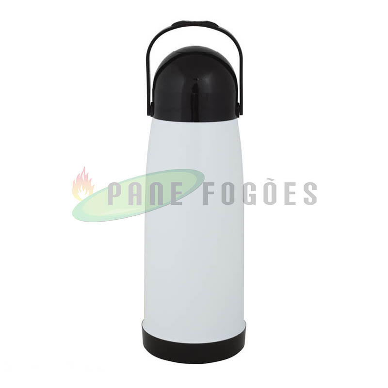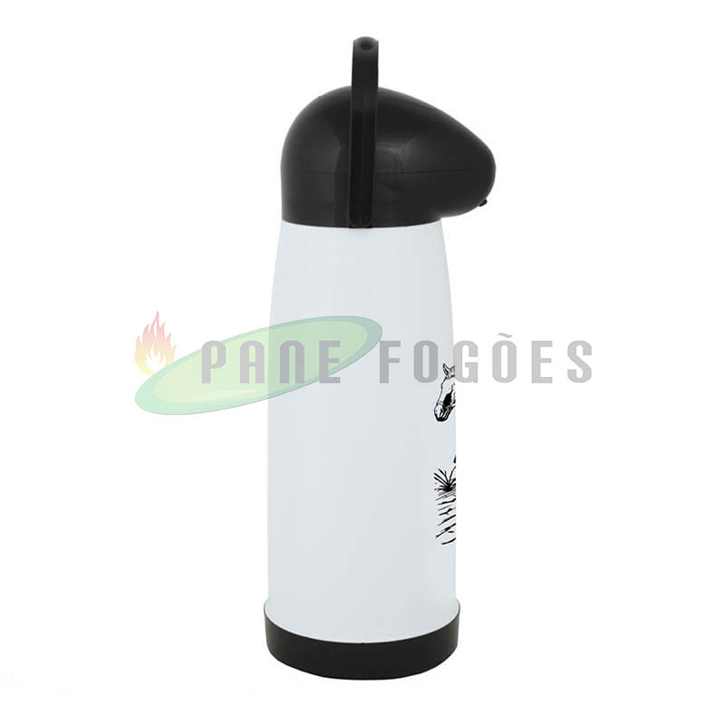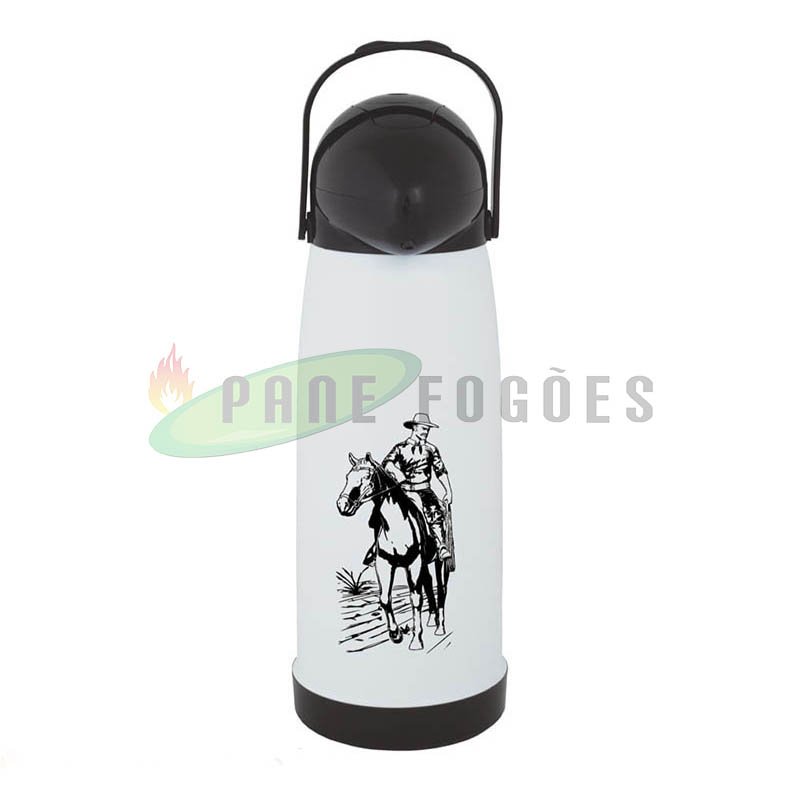 A garrafa térmica pressão Farroupilha branca é ideal para líquidos quentes para o armazenamento de água para o chimarrão ou para deixar aquele cafezinho quente por mais tempo, ou gelados como água ou suco para refrescar no verão, seu sistema de pressão proporciona facilidade na hora de servir.