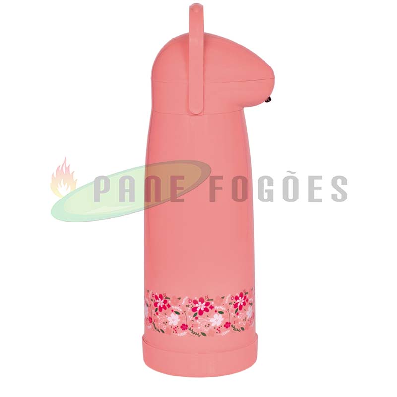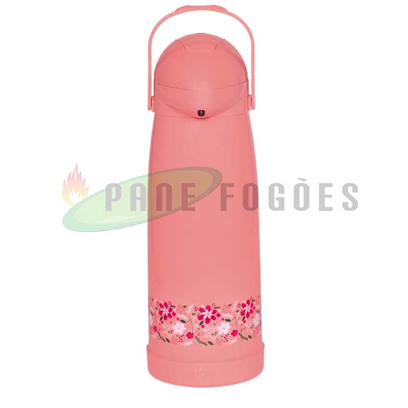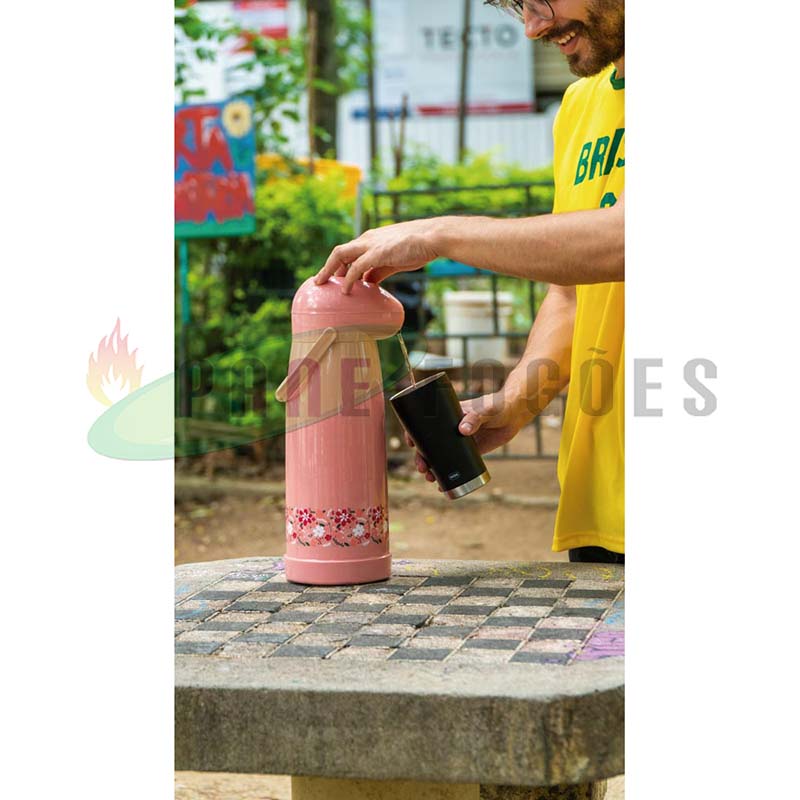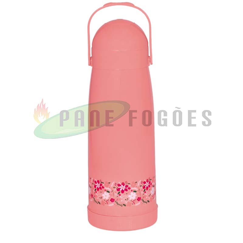 A garrafa térmica pressão primavera pêssego é ideal para líquidos quentes para o armazenamento de água para o chimarrão ou para deixar aquele cafezinho quente por mais tempo, ou gelados como água ou suco para refrescar no verão, seu sistema de pressão proporciona facilidade na hora de servir.