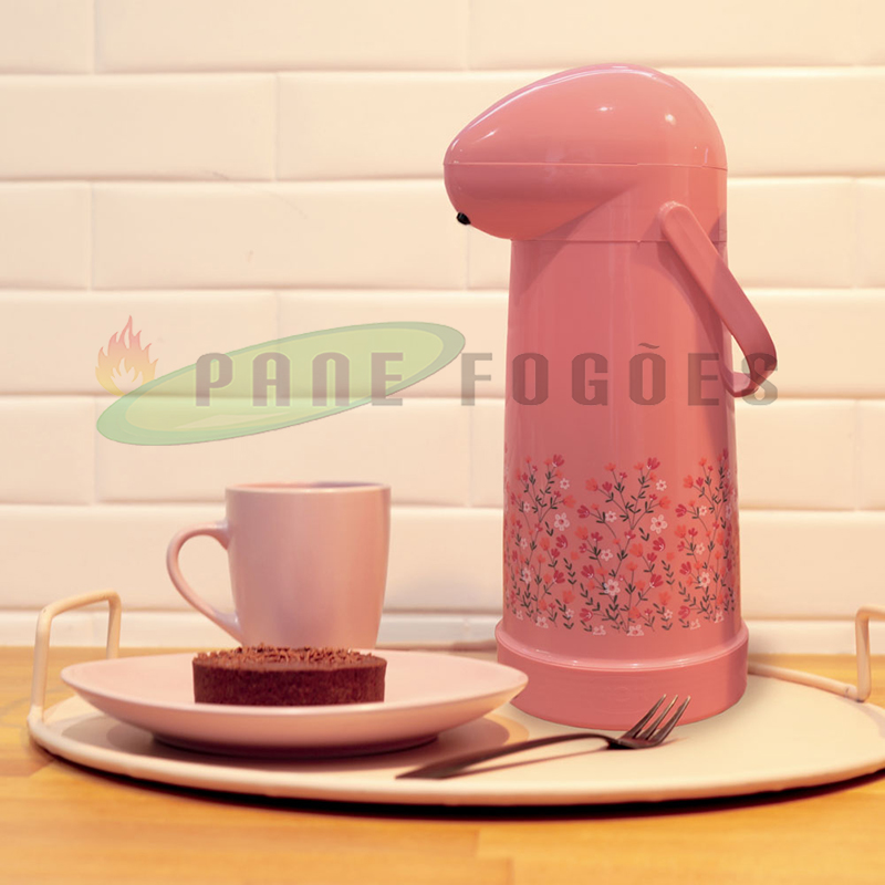 A garrafa térmica pressão primavera pêssego é ideal para líquidos quentes para o armazenamento de água para o chimarrão ou para deixar aquele cafezinho quente por mais tempo, ou gelados como água ou suco para refrescar no verão, seu sistema de pressão proporciona facilidade na hora de servir.