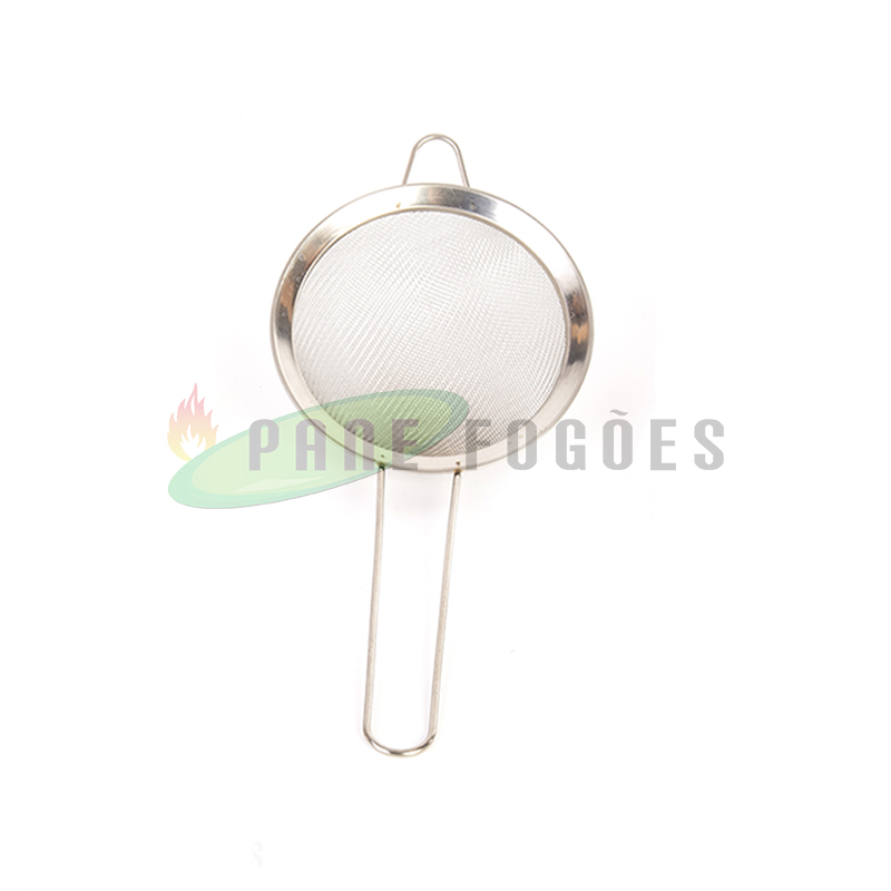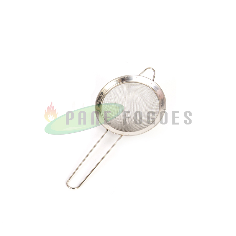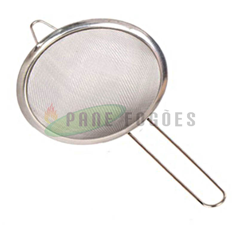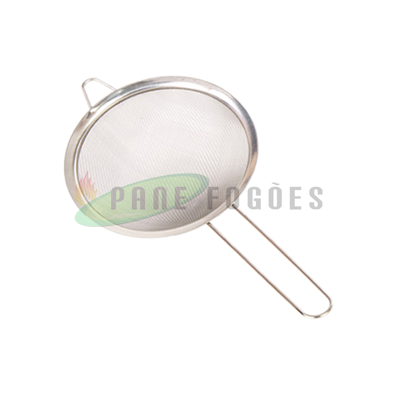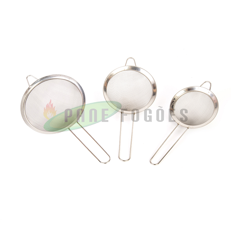 A peneira com borda de inox é ideal para coar líquidos ou alimentos quentes como óleo ou massas.